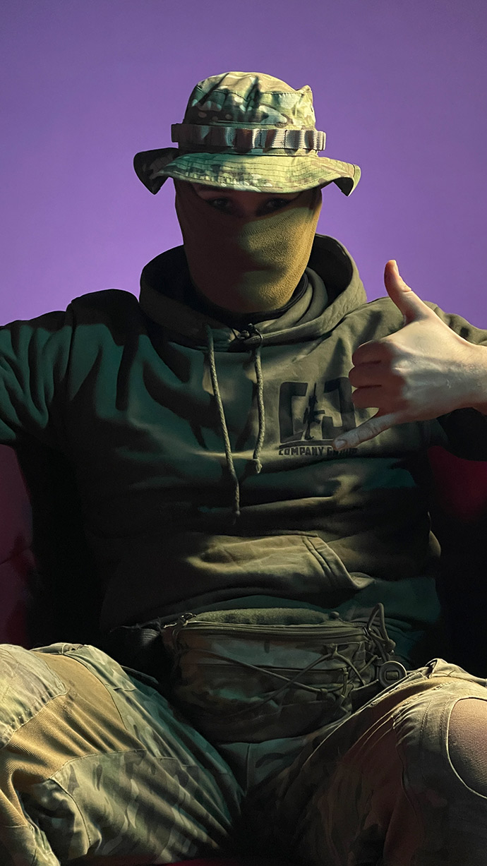 24 лютого 2022 року у місто Олександра зайшли російські війська, а сам він змушений був тікати з окупації. Саме тому хлопець зараз не показує публічно свого обличчя та не називає на загал свого прізвища.