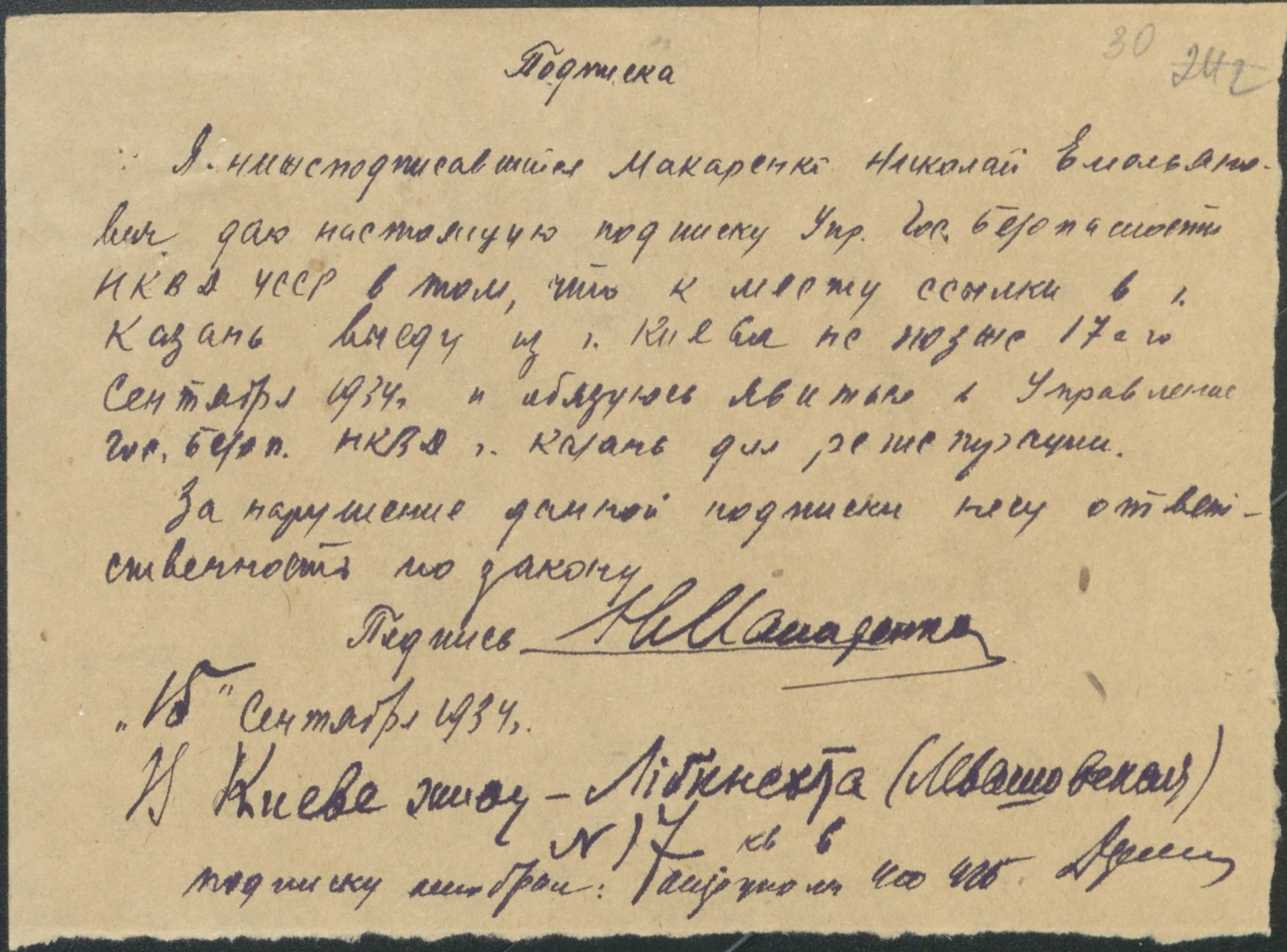 Як виглядала в 1930-ті "чорна мітка", що визначала долю людини? В справі Миколи Макаренка її можна побачити – подряпаний шматок паперу з двома реченнями.