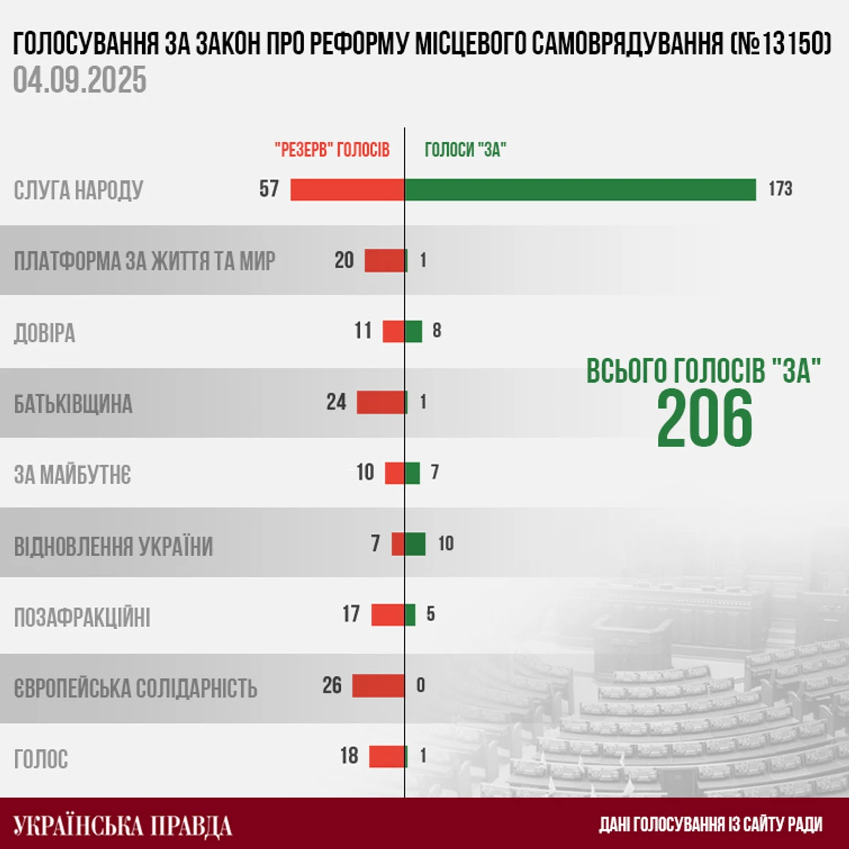 Интересно, что закон был полностью саботирован оппозицией из "Евросолидарности" и "Голоса", сама "Слуга народа" снова собрала лишь 170+ голосов, но все "попутчики" власти сработали очень дружно: все обломки "Партии регионов" и "Батькивщина" фактически выжали свой максимум по голосам.