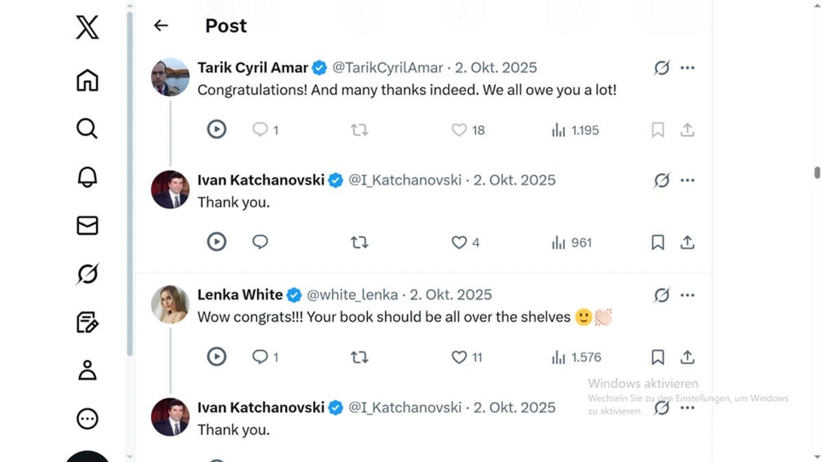 Связано это с поддержкой Маска или нет, упоминания книги Качановского — официально изданной в 2026 году, но распространявшейся с 2025 года — в социальной сети Маска X (ранее Twitter) были исключительно активными. Например, к 2 января 2026 года наукометрический инструмент Altmetric уже "зафиксировал 2341 пост в X [ссылающихся на книгу Российско-украинская война и ее истоки] от 1443 пользователей X, с верхней границей в 5 165 388 подписчиков". Три месяца спустя, 1 апреля 2026 года, Altmetric зафиксировал "3174 поста в X от 1799 пользователей X, при верхней границе в 6 626 013 подписчиков". Что касается — правда, гораздо меньшей — сети BlueSky, не принадлежащей Маску, то до 1 апреля 2026 года Altmetric зафиксировал лишь пять пользователей, упоминающих Российско-украинская война и её истоки. Последнее число является типичным показателем успешности распространения специализированных книг, издаваемых академическими издательствами.