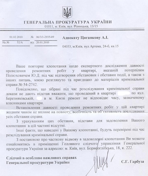 Или господин Медведько так легко сдаст позиции, занятые следствием по вопросу об экспертизе на квартире по улице Березняковской, которую опознал один из потерпевших?