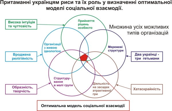 Образність та схильність до творчості обумовлює потребу у використанні таких правил і алгоритмів в організації колективної роботи українців, які б забезпечували можливість творчої самореалізації кожного учасника та спонукали б його до творчої ініціативи, самовдосконалення та самоосвіти.