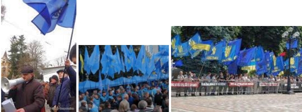 Прапори "Свободи" дуже подібні до атрибутики Партії регіонів. Здаля й не відрізниш.