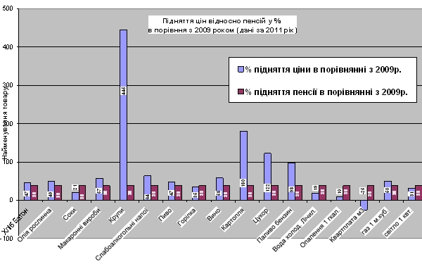 Розкажу як його проводив. Маючи контакти по супермаркетах, взяв інформацію по цінах станом на квітень 2009-го, квітень 2010-го та квітень 2011 року. Так само підняв дані по розміру пенсії звичайного пересічного пенсіонера в той же період та дані платіжок по утриманню квартири.