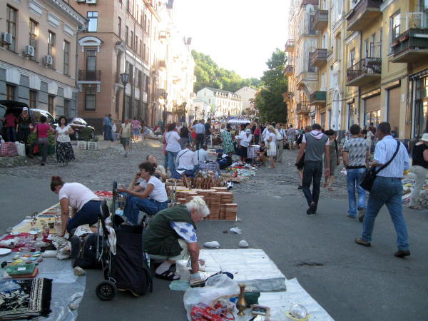 В один із днів ходила Андріївським. Дивилась на черевики ручної роботи та вишиванки, сиділа поруч із Булгаковим на лавці.