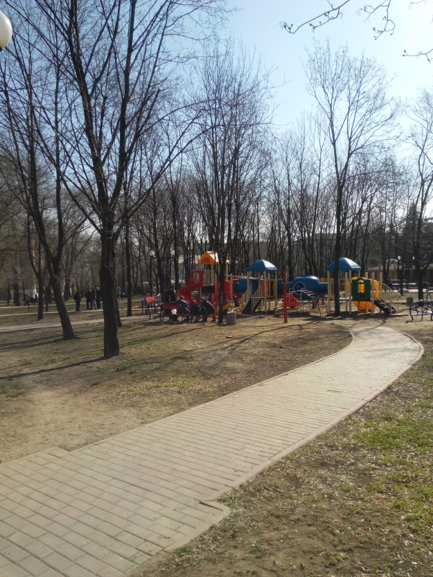 Напротив управления, в парке на детской площадке расположились казачки из Станицы Луганской – еще одно карманное войско председателя облсовета Валерия Голенко. Покуривают, машут нагайками, что-то обсуждают.