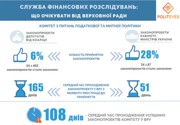 Найвірогідніше, законопроектом про службу фінрозслідувань буде займатися Комітет з питань податкової та митної політики. Тим паче, що перший варіант тексту вже поданий на розгляд цього Комітету групою коаліційних депутатів. Альтернативним ініціатором у даному випадку може стати Кабінет Міністрів України.