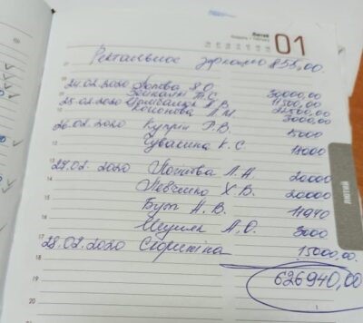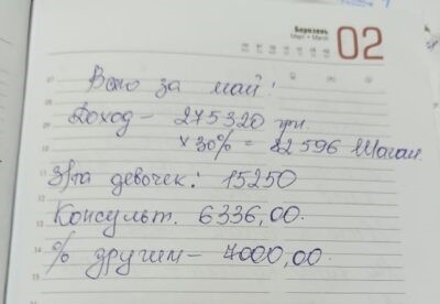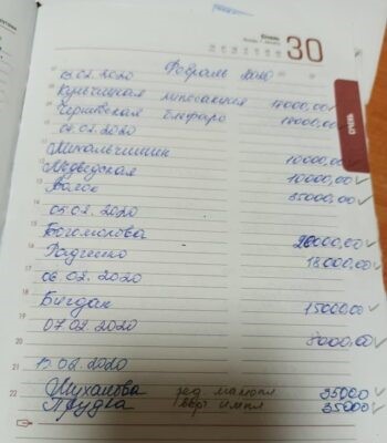 Нам потрапили записи з блокноту Вікторії Андрушкевич. На записах видно прізвища людей, суми та послуги, які надавалися в лікарні. І це тільки одна маленька частина, що потрапила нам в руки. Це "чорна бухгалтерія" Дніпровської дорожньої клініки на залізничному транспорті, в якій задіяне все керівництво клініки.