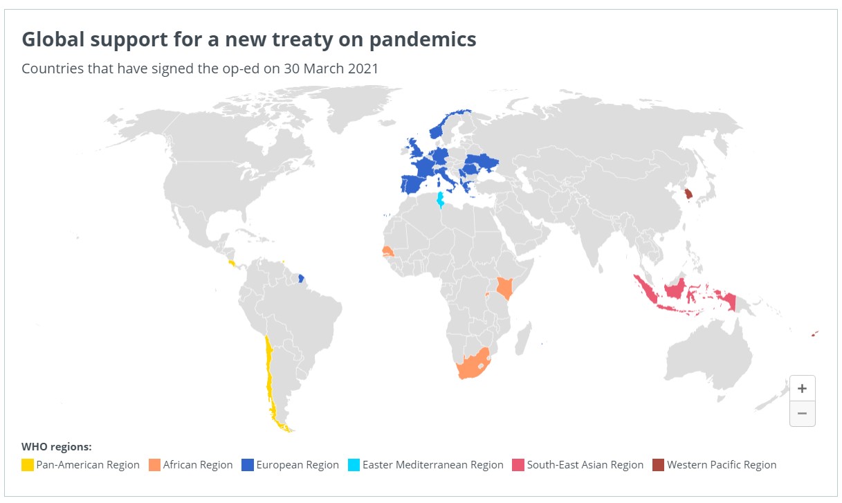 Спільне комюніке 27-ми світових лідерів, т.зв. "друзів Пандемічної Угоди" було опубліковане 30 березня 2021 року. Серед іншого, у документі зазначається: