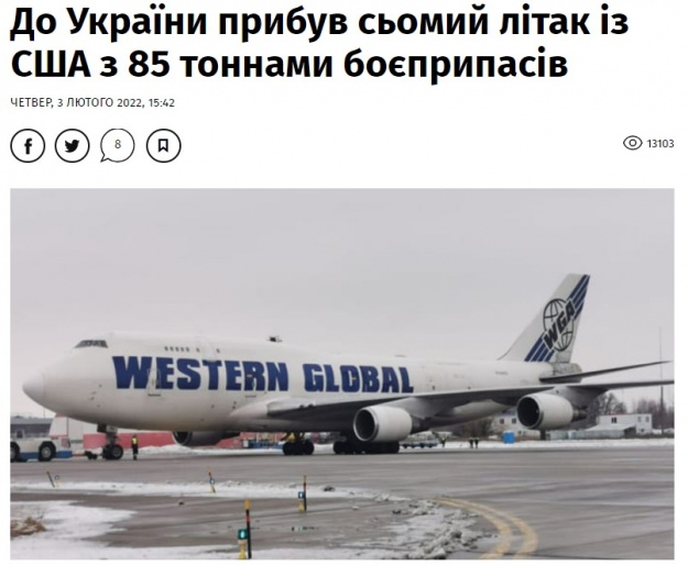 Літаки з боєприпасами та іншою військовою допомогою від Вашингтона один за одним приземляються в Україні. Цього тижня Бориспіль прийняв уже сьомий такий літак.