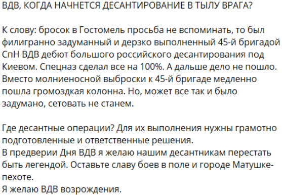 З того часу у російських десантників все стало набагато гірше. І довела це війна в Україні. В РФ вже відверто йдуть розмови на тему: "а чи потрібні нам десантні війська у тому вигляді, в якому вони зараз існують".