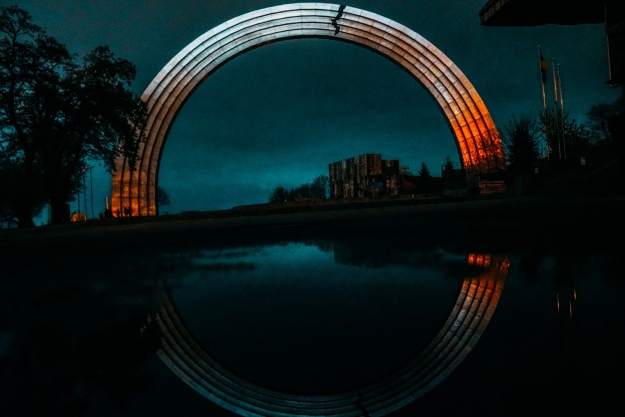 Колишня арка "дружби народів" у Києві восени 2022 року під час ракетних атак та відключень світла