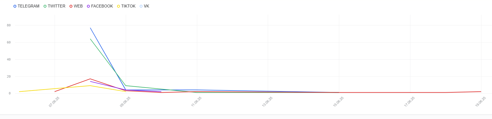 Зокрема, 4 червня речниця МЗС РФ Марія Захарова заявила, що "українці не потрібні Зеленському ні живими, ні мертвими". Цю заяву було процитовано у понад 160 публікаціях, розміщених протягом 4-20 червня. Сумарне охоплення публікацій перевищило 716 тис. переглядів.