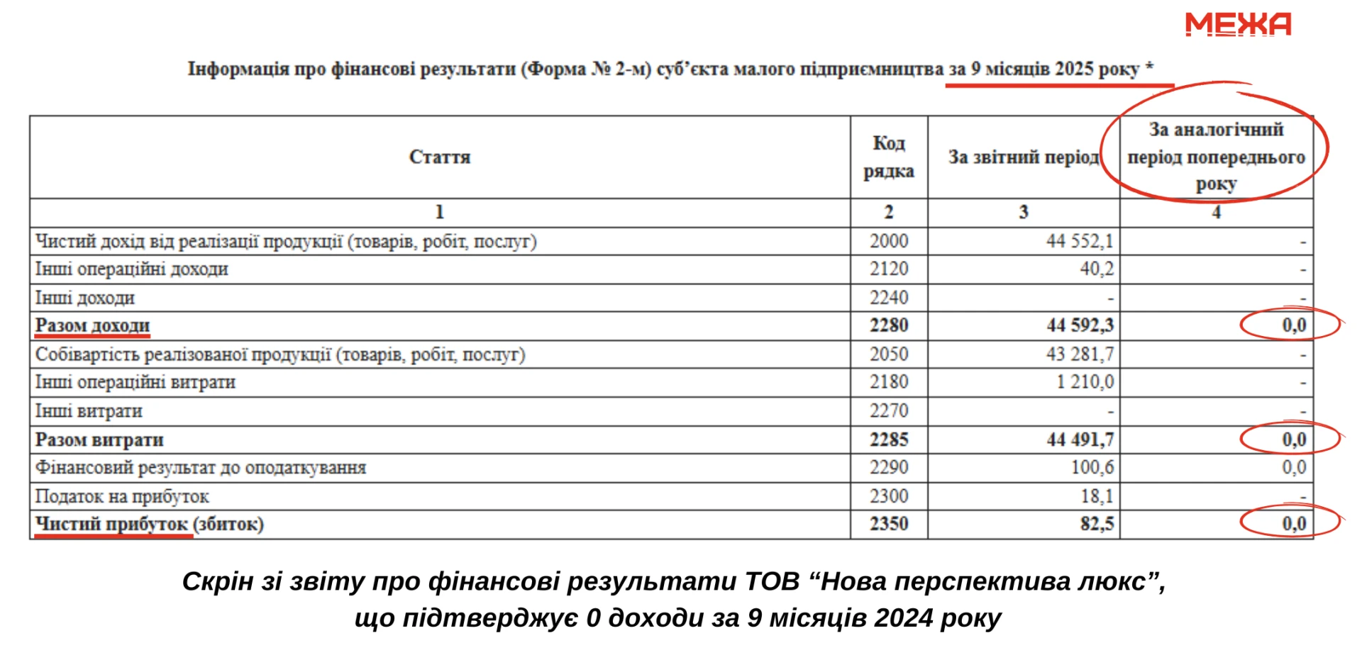 Интересно, что КП "Киевтеплоэнерго" легко нашло причины для отклонения более экономически выгодных предложений других участников, однако на явную фальсификацию тендерной документации закрыло глаза. - Нулевые доходы. В отчете о финансовых результатах за 9 месяцев 2025 года ООО показывает "ноль" доходов за аналогичный период 2024 года. Примечательно, но как раз тогда она якобы выполняла аналогичные работы с НДС, за которые должна была получить миллионы гривен. Именно эти договоры компания добавила к тендерной документации на восстановление ТЭЦ. Фактически отчет о "нулевых" доходах свидетельствует, что никаких работ ООО не выполняла в то время и не должна была быть допущена к бюджетным закупкам.
