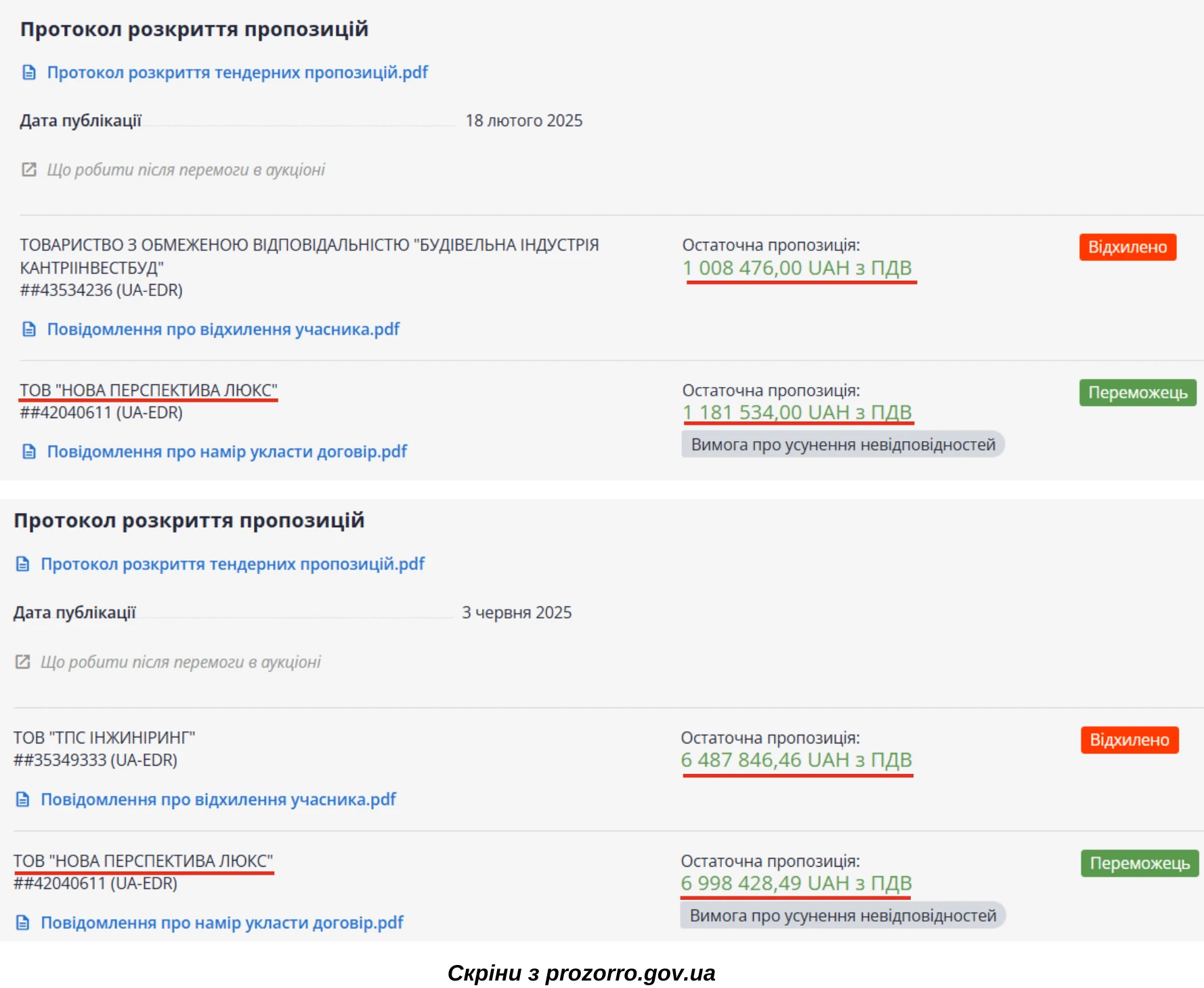 В марте-августе 2025 года КП "Киевтеплоэнерго" заключает 7 договоров на 33 млн грн с ООО "Новая Перспектива Люкс". За 33 млн грн ООО должна до середины 2026 года разработать проектные документации на ремонт нескольких ТЭЦ Киева, пострадавших в том числе в результате обстрелов.