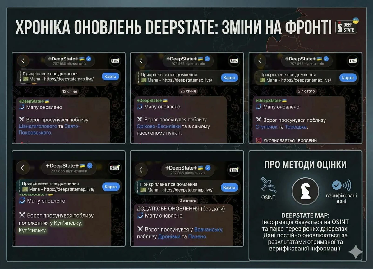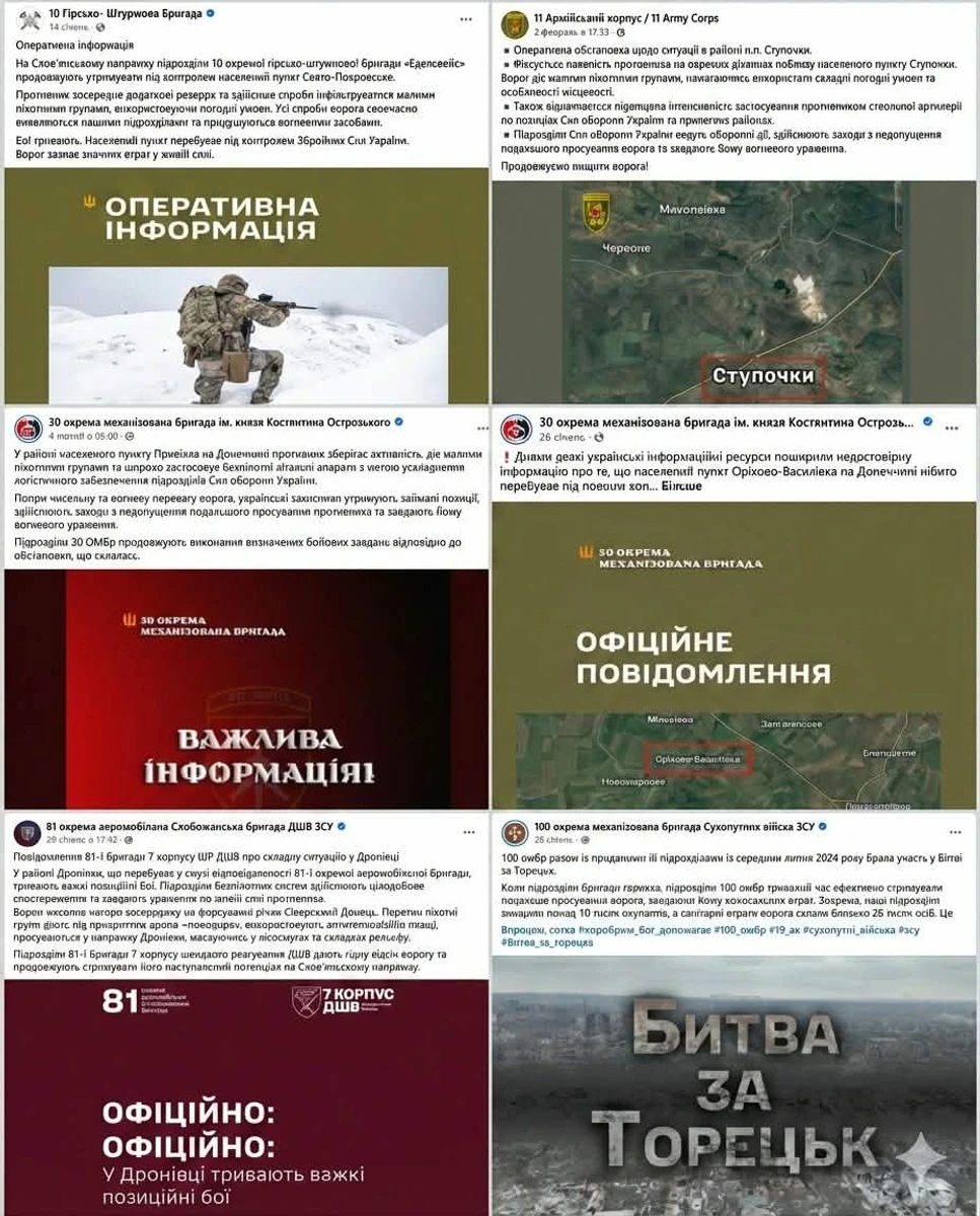 - OSINT-ресурсы сообщают о продвижении противника, потере позиций, заходе врага в населённые пункты или фиксации на определённых рубежах.