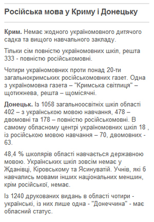 Як порушується право російськомовної меншини в Україні і російськомовних загалом використовувати рідну мову, у чому це найбільше виявляється і як допоможе їм новий мовний закон, ухвалений парламентською більшістю? Кореспонденти ВВС Україна шукали відповіді на ці питання у регіонах, де російська мова переважає - у Криму, Донецькій та Луганській областях, а також у столиці.