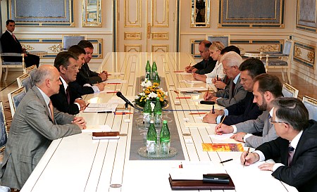 В консультациях с президентом принимают участие Александр Мороз, руководители 5 фракций, председатель секретариата Олег Рыбачук и его первый заместитель, советник президента по юридическим вопросам и его представитель в Конституционном Суде.