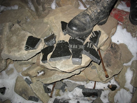 "Уничтожена гранитная доска украинской сектантской церкви. Разбит гранитный памятный знак, посвящённый т.н. "конституции Украины", - добавляется в сообщении.