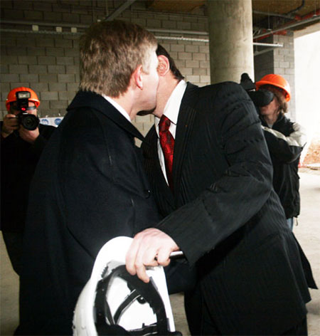 | Луценко целуется с Ахметовым и обменивается рукопожатиями с Колесниковым. Фото сайта "Остров" |