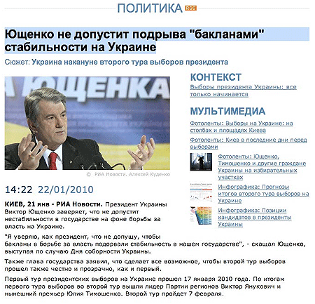 В действительности глава Украины сказал нечто иное. "Я заверяю, что как президент не допущу, чтобы два клана в битве за власть подорвали стабильность в государстве".