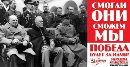 Как заявил в интервью журналистам в четверг депутат от КПУ, глава Луганского обкома КПУ Спиридон Килинкаров, плакаты были вывешены в Луганске по инициативе ветеранских организаций и луганских коммунистов.