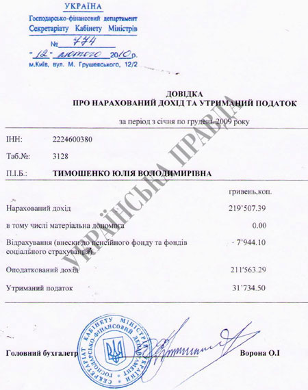 Взносы Тимошенко в Пенсионный фонд, и фонды соцстрахования составили 7 тысяч гривен. Ее налогооблагаемый доход составил более 211 тысяч гривен, а удержанный налог - 31 тысяча гривен.