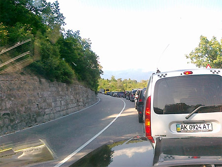 Как пишут пользователи форума "Украинской правды" , затор, в частности, образовался в субботу на выезде из Ливадии, где проходит неформальный саммит глав государств СНГ.