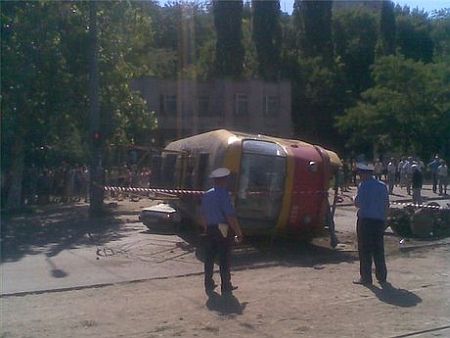 В Одессе сорвался со спуска и опрокинулся вагон трамвая маршрута N15.