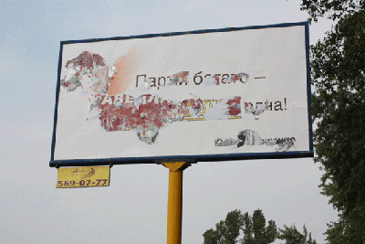 БЮТ обвиняет власть в уничтожении рекламных билбордов партии "Батькивщина".