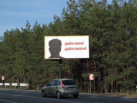 Пять рекламных щитов с изображением известного профиля Гонгадзе и надписью "Дайте жить! Дайте писать!" были вывешены на трех стратегических трассах - Новообуховской, Старообуховской и Вышгородской.
