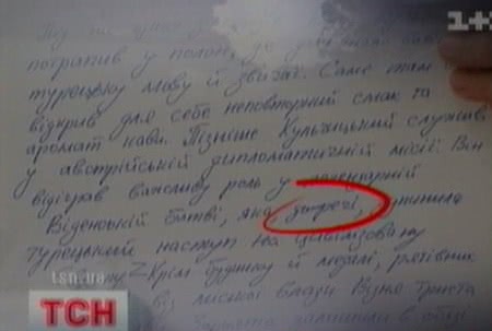 Так, журналисты увидели на одной из страниц диктанта министра ошибку - слово "доречі" написано слитно, тогда как правильно - отдельно ("до речі").
