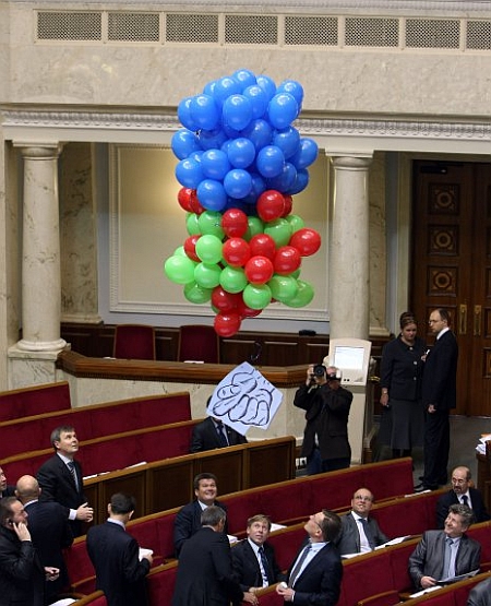 Депутаты от БЮТ принесли в Верховную Раду шарики с изображением шиша.
