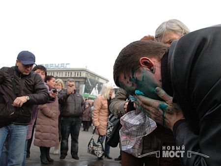 В Днепропетровске лидера протестующих облили зеленкой (Фото)