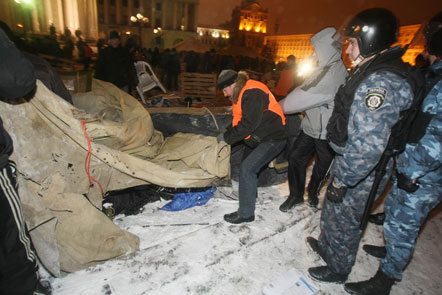 В ночь с четверга на пятницу с применением спецподразделений МВД был разобран палаточный городок предпринимателей на Майдане.