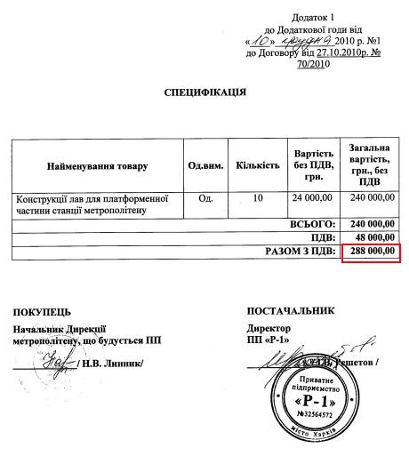 По его словам, единственными документами, которые дают ответ на вопрос, сколько в действительности стоили скамейки для станции метро "Алексеевская", - это спецификация к договору и товарная накладная.