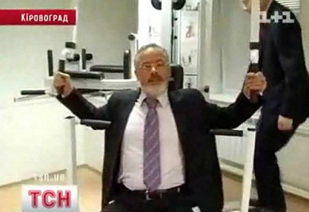 Министр образования Дмитрий Табачник лично проверил оснащение спортзала лицея искусств в Кировограде и продемонстрировал, что он может.