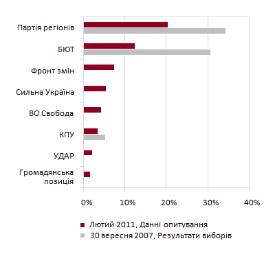 В течение второй половины 2010 - январе 2011 произошло снижение рейтинга Партии регионов на 6,2% по сравнению с октябрем.