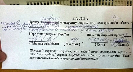 Оригинал карточки для голосования в Верховной Раде депутата НУНС Владимира Арьева восстановили.