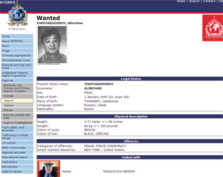На сайте Интерпола напротив фамилии "Тайванчика" стоит красный флажок, что означает требование его ареста при появлении на территории стран-членов Интерпола.