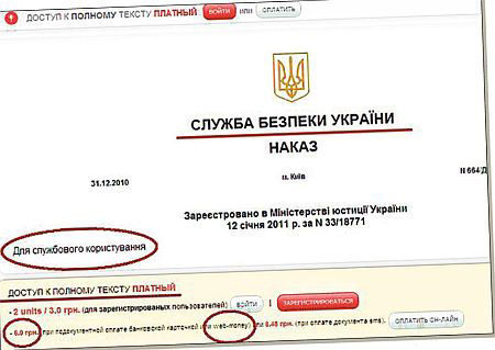 Кроме того, вице-президент ЗАО "Информтехнологии" (владелец системы Нормативные акты Украины) Юлия Полубинская заявила: "Документы с грифами "секретно" и "для служебного пользования" у нас в базу никогда не попадают".
