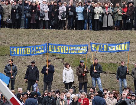 Под зданием Кабмина проходит акция работников образования, которые требуют повышения зарплат.