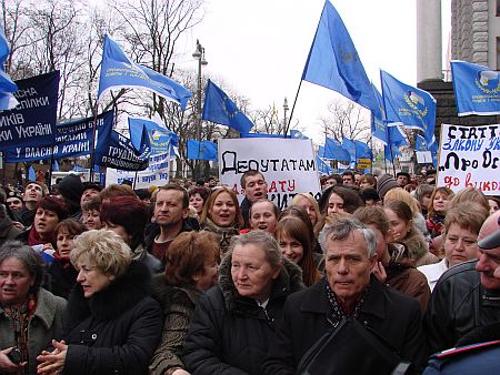 На прошлой неделе вкладчики национализированного банка "Родовид" перекрыли на полчаса дорогу на Подоле в Киеве, чтобы получить свои депозиты.