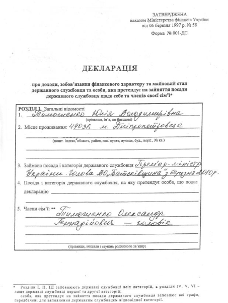 Всего члены семья Тимошенко (среди членов семьи записан только муж Тимошенко - Александр) получили почти 989 тысяч гривен дохода. Эти средства полученные от предпринимательской и независимой профессиональной деятельности.