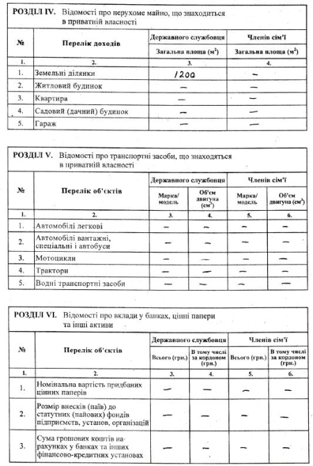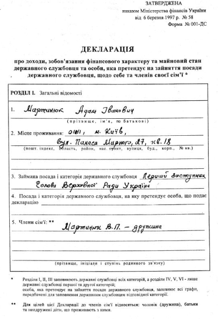 Согласно обнародованной декларации Мартынюк не имеет в своей собственности ни дома, ни квартиры, ни машины. Этого имущества также не имеют члены его семьи.