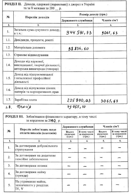 Члены его семьи получили 3 тысячи 61 гривну совокупного дохода (заработной платы).