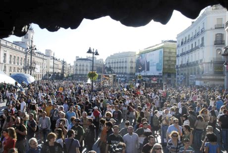 С 15 мая каждый вечер тысячи людей выходят на площадь Пуэрта-дель-Соль.