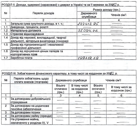 Он получил заработную плату народного депутата (199,3 тысяч гривен) и материальную помощь (более 35 тысяч гривен).