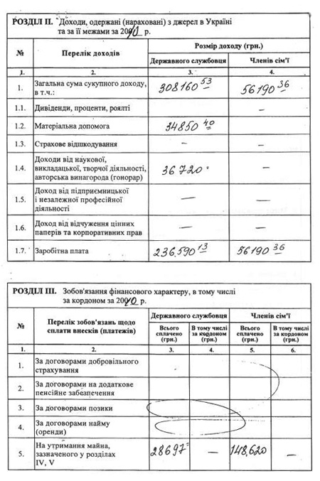 Семья депутата получила 56,19 тысяч гривен заработной платы.