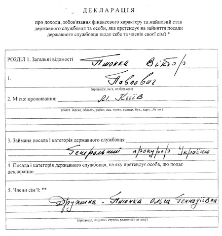 Генпрокурор также имеет обязательства по договорам найма (аренды) в 24 тысячи гривен и на содержание имущества - 14 тысяч гривен. Его жена тратит на содержание имущества 60 тысяч гривен.